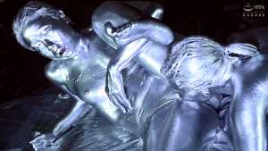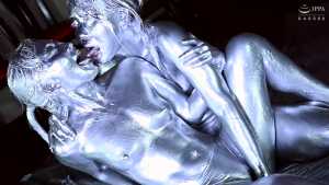 The first installment is a lesbian scene featuring silver paint. It's almost rude to go into too much detail; it's a spectacular, hard-core, extreme, and erotic messy lesbian scene!