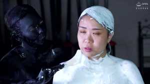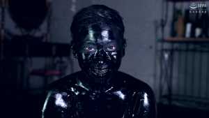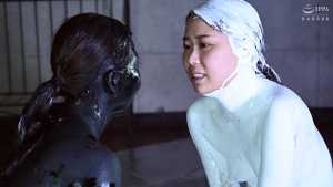 The first half of the video shows Mirori painting herself completely black and then painting Mitsuka completely white from the neck down.