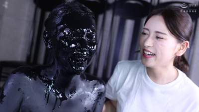 In the second half, white paint is smeared all over Natsuki's black body. There is also a scene where she sticks her face into white paint in a basin.