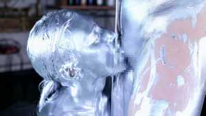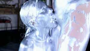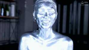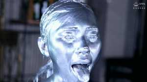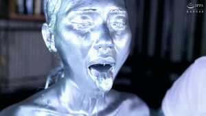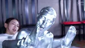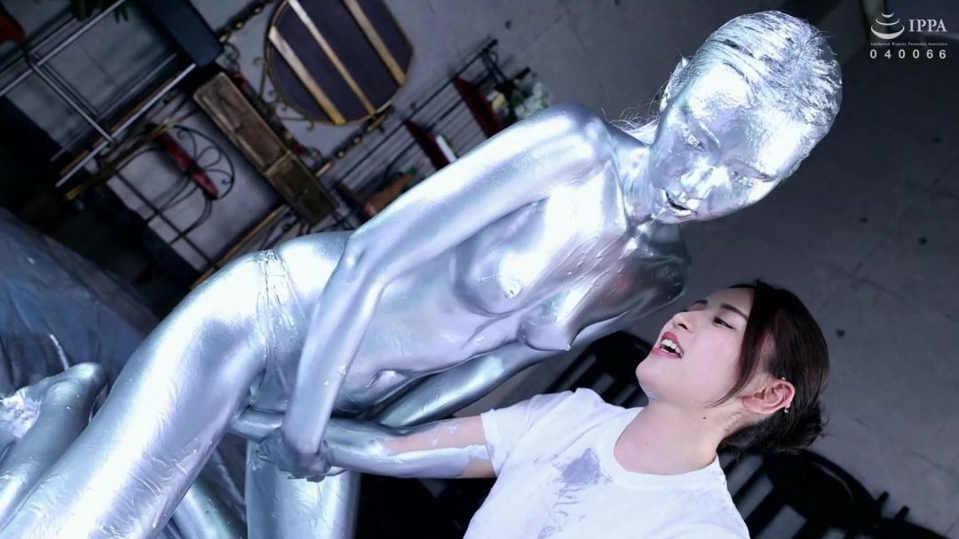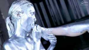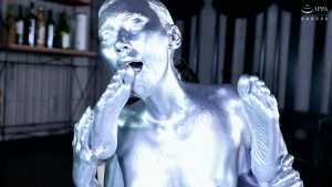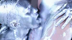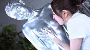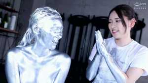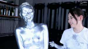 In the first half, Yuri covers Natsuki's whole body in silver paint and plays with her body with her fingers.