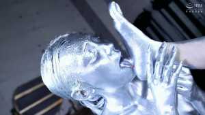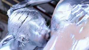 Yuri, unreservedly and happily smears silver paint all over her kind girlfriend. It looks like a lot of fun to soil, smear, torment, and make her serve Yuri!