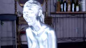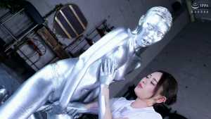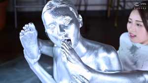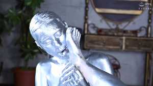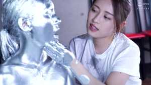In the first half, Yuri covers Natsuki's whole body in silver paint and plays with her body with her fingers.